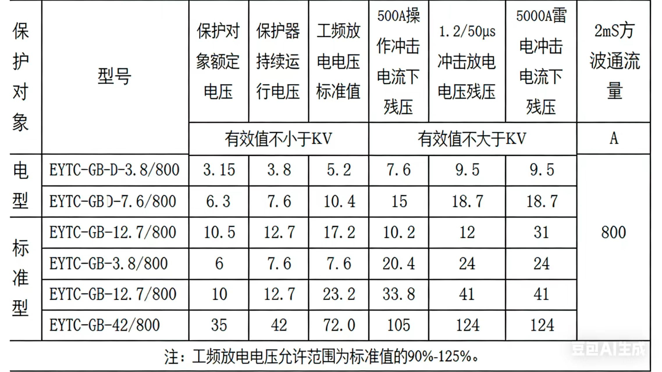 操作冲击电流(100 / 250A)残压比:≤ 1.33
